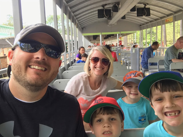 Once we finished hole 18 we jumped on the train before it left! It was a really relaxing ride. I think it made us all sleepy. It's much longer than the train ride at Six Flags and it was breezy and nice. Of course the boys started complaining about halfway through because they were starving and ready for it to be over. Haha.