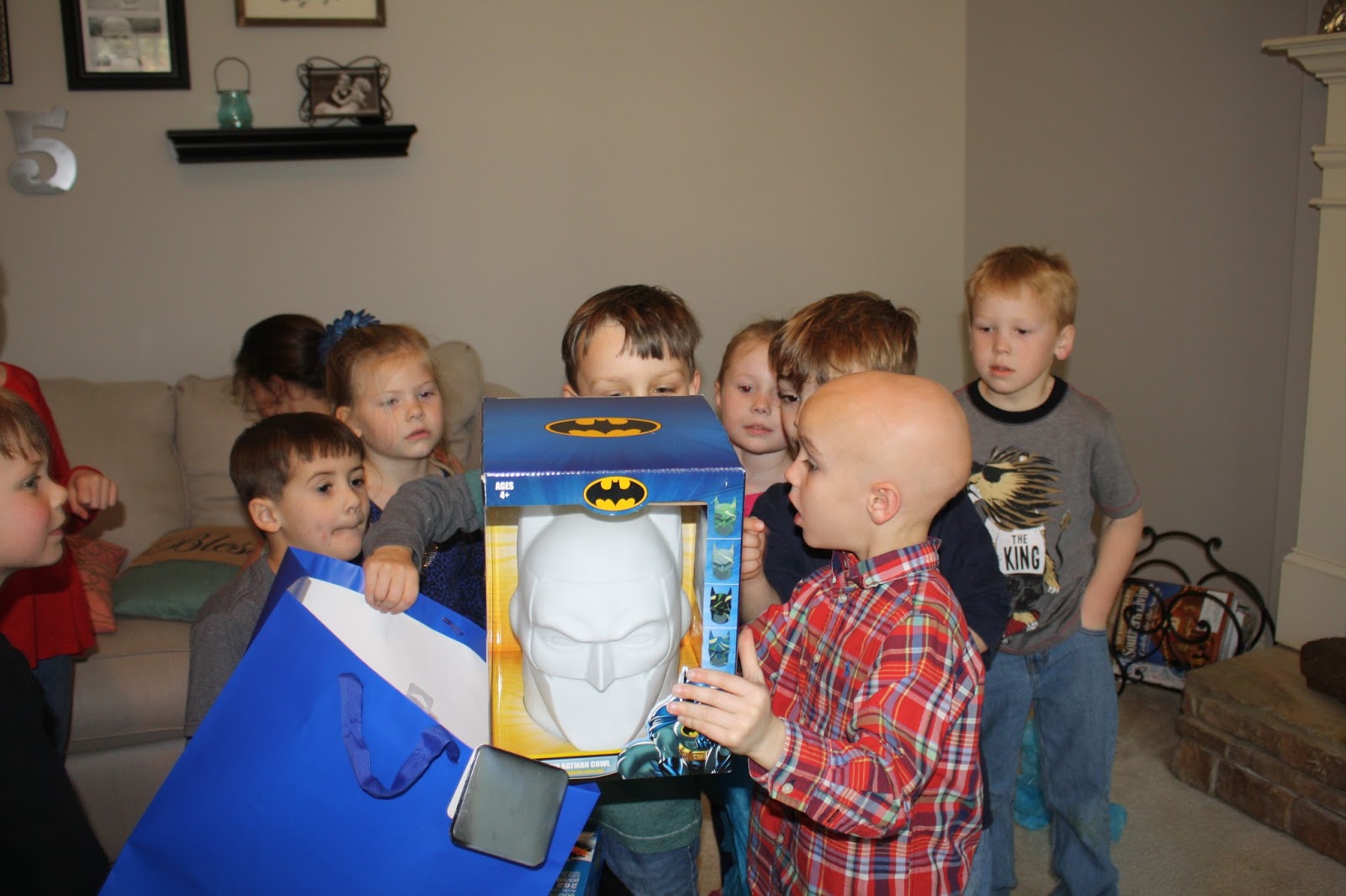 Later we rounded everybody up again for presents. And this was possibly the wildest part of the party. Just one big mob of kiddos making their way around our living room with each present opened.